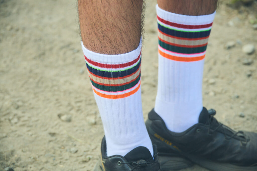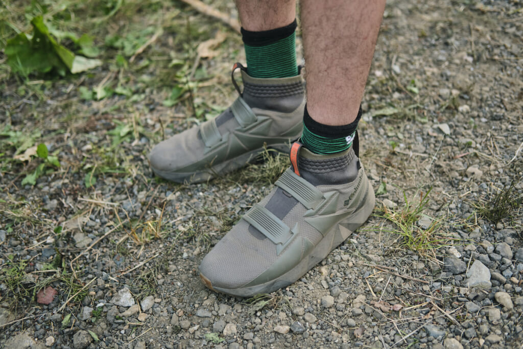 また、もう少しライトな履き心地を求めて、トレランシューズを愛用している人も多数。こちらもしっかりと足を包み込みグリップ力を発揮してくれるので、フジロックとの相性はバッチリ。ソックスとの合わせでオシャレを楽しむカッコはぜひ参考にしたい。