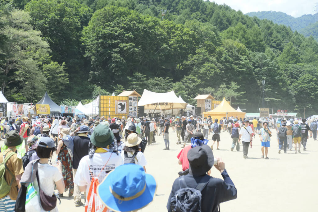 会場は昨年同様、猛暑日を記録。標高が高いこともあり、強い日差しが降り注ぐので、野外フェスならではの酷暑との戦いに。ところ天国やOASISエリア近くを流れる川で水浴びして涼んだり、木陰に椅子を出してステージから聞こえてくる音を聞きながらゆったり過ごすヒトが多く見受けられた。