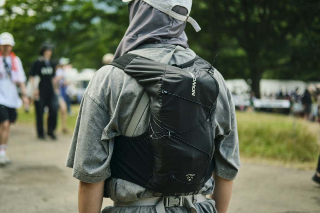 先述のシューズ同様、トレランアイテムが市民権を得たということで、会場内ではザックを活用しているヒトを多数発見。小ぶりなサイズ感がフジロックにもピッタリで、カラダにフィットするので機動力もアップ。