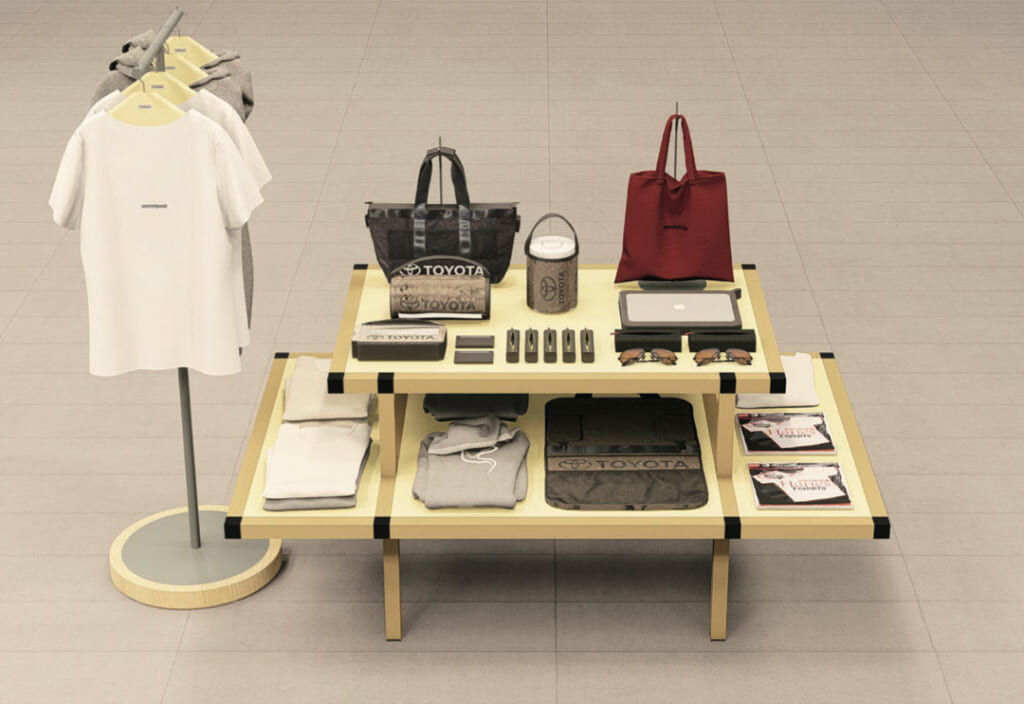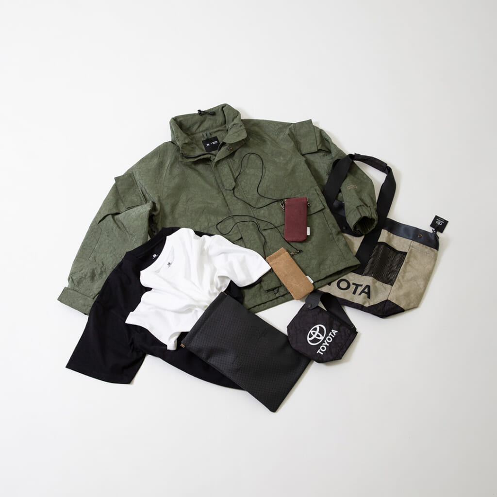 アパレル × 自動車の廃棄物を融合させた新しいアップサイクル商品や体験サービスの提供に向け、3社の強みを活かしたコレクション。「トヨタ」の車を製造する過程で発生するリユースやリサイクルが難しい廃棄材等を用い「アーバンリサーチ」がデザインを担当。生産ノウハウを持つ「豊島」がそれらのモノづくりを担当し、3社のタッグによって生まれた様々なプロダクトが販売される。