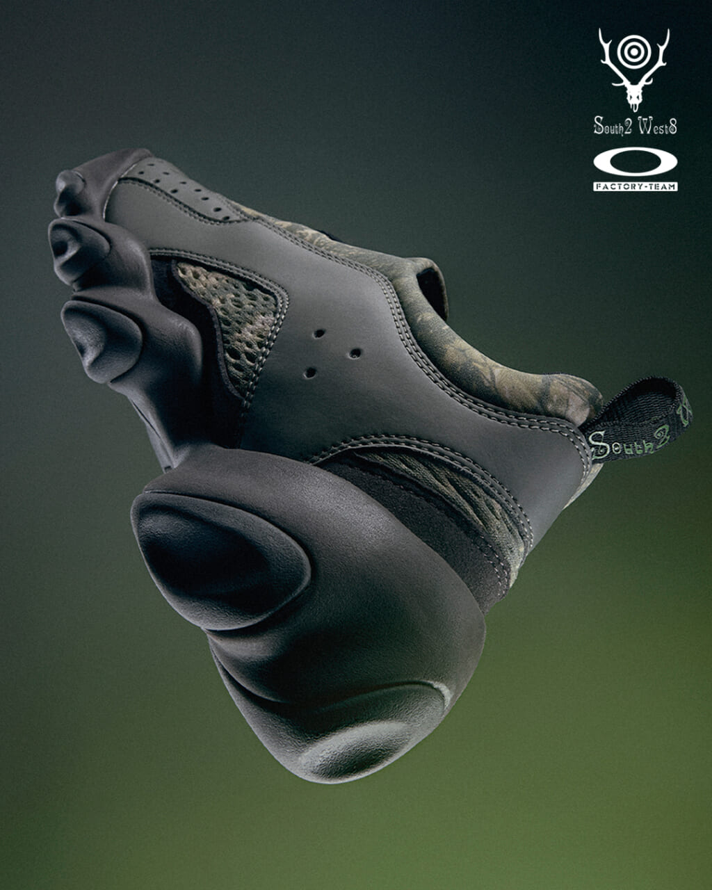今回チョイスしたのは、2000年台に人気を博した「オークリー」の“AFLESH SANDAL”。アレンジ要素として、カモフラージュ柄のメッシュ素材とネオプレンを組み合わせたソックアッパーを採用。厚底のアウトソールは3点フィットの仕様により、高いクッショニングと安定性をもたらしてくれます。