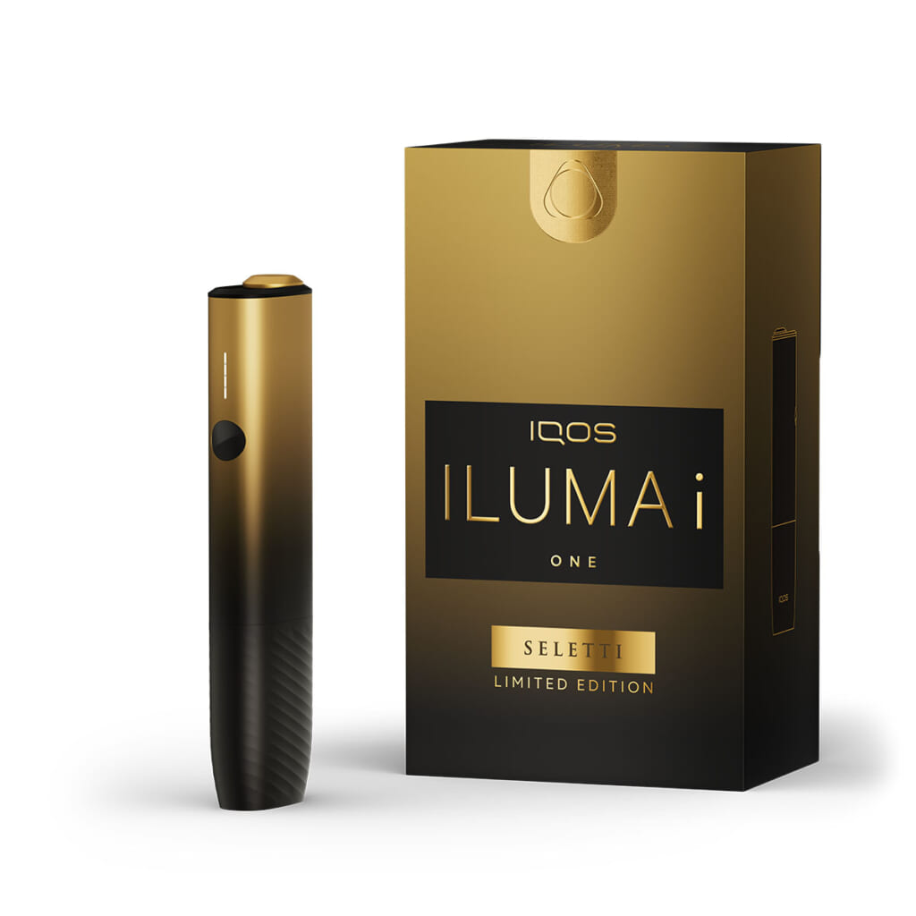 IQOS ILUMA i ONE はセレッティ モデル20 本連続使用が可能なオールインワンモデル。シンプルながら、ゴールドとブラックの色のグラデーションが美しく上品なデザインだ。