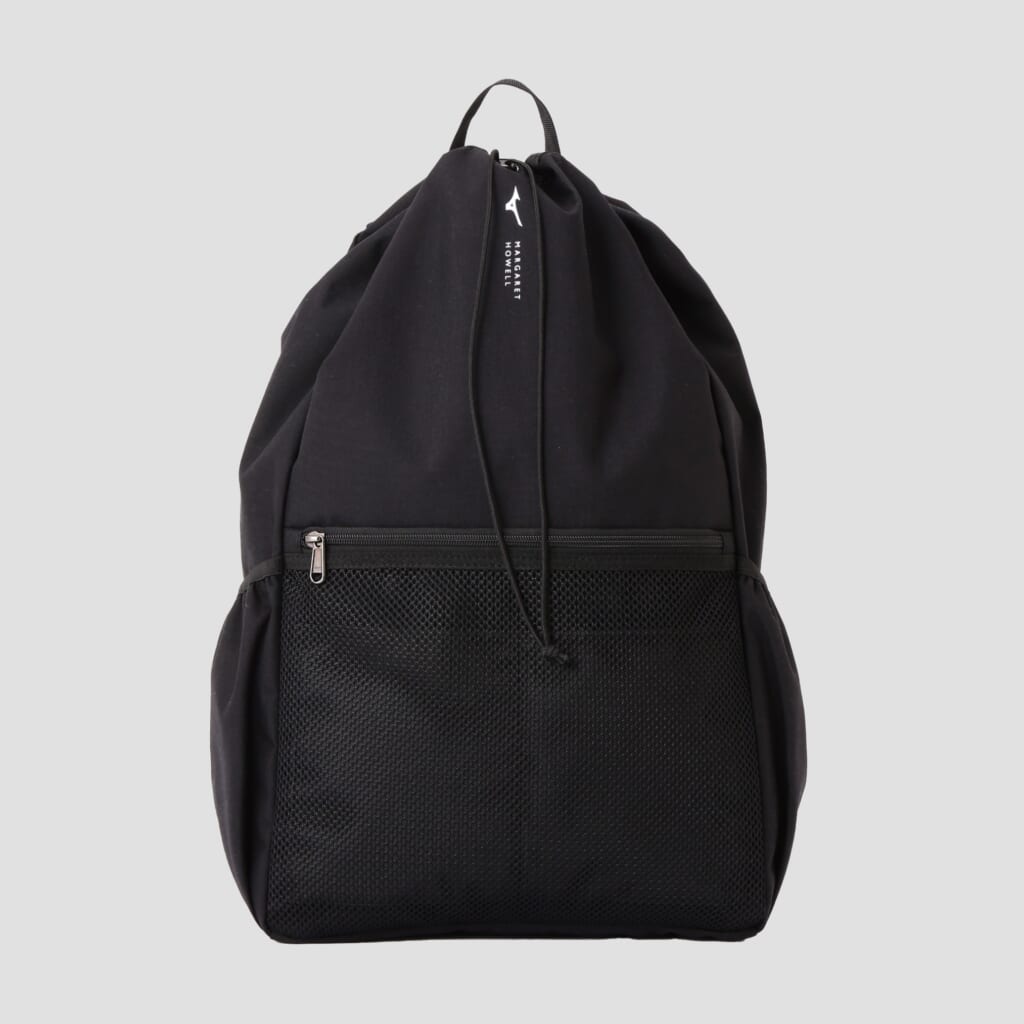 撥水性と軽さを備えたナイロンキャンバス素材を使用したバックパックは、天口に巾着ディテールを取り入れキャッチーなデザインが◎。