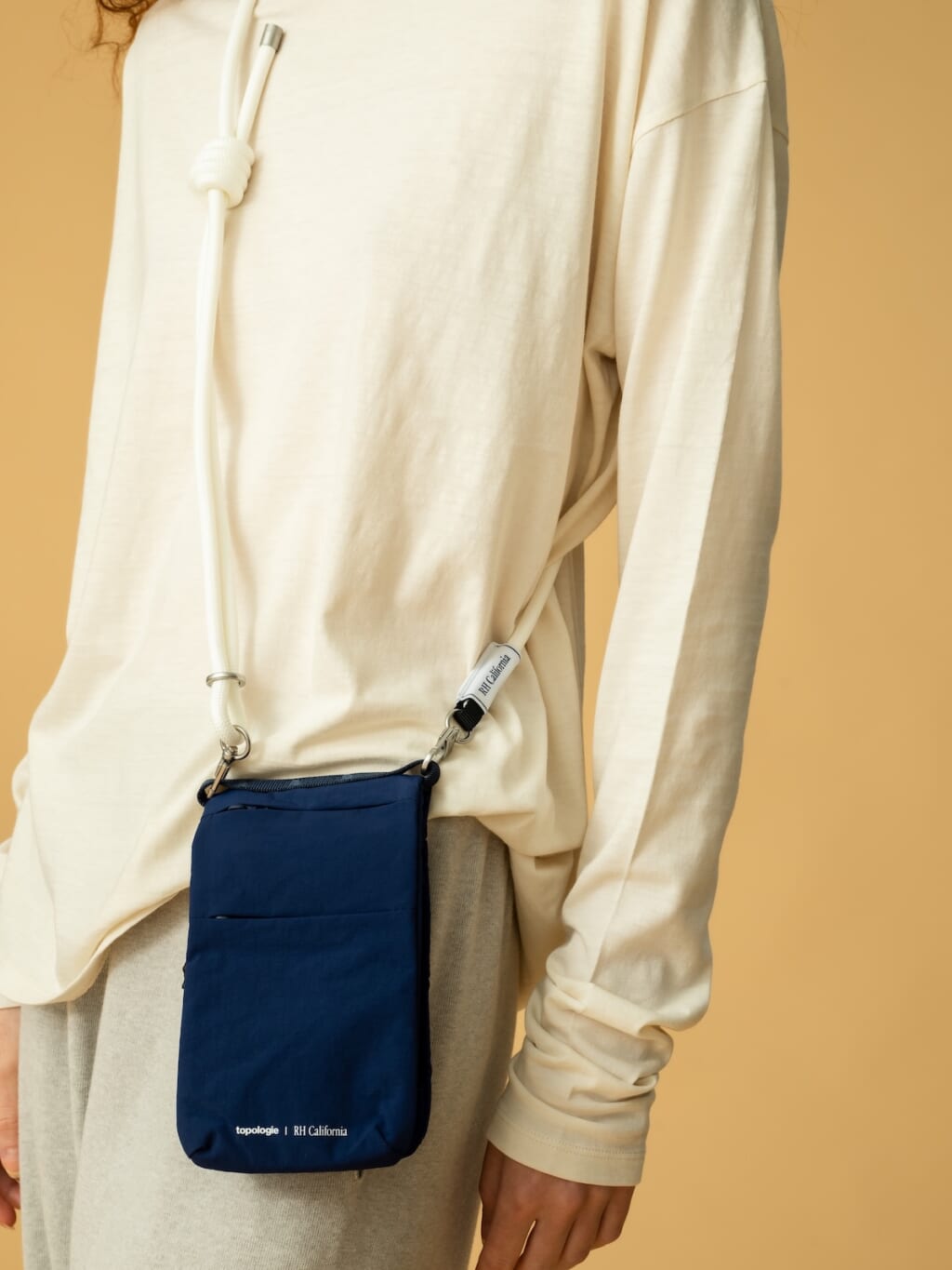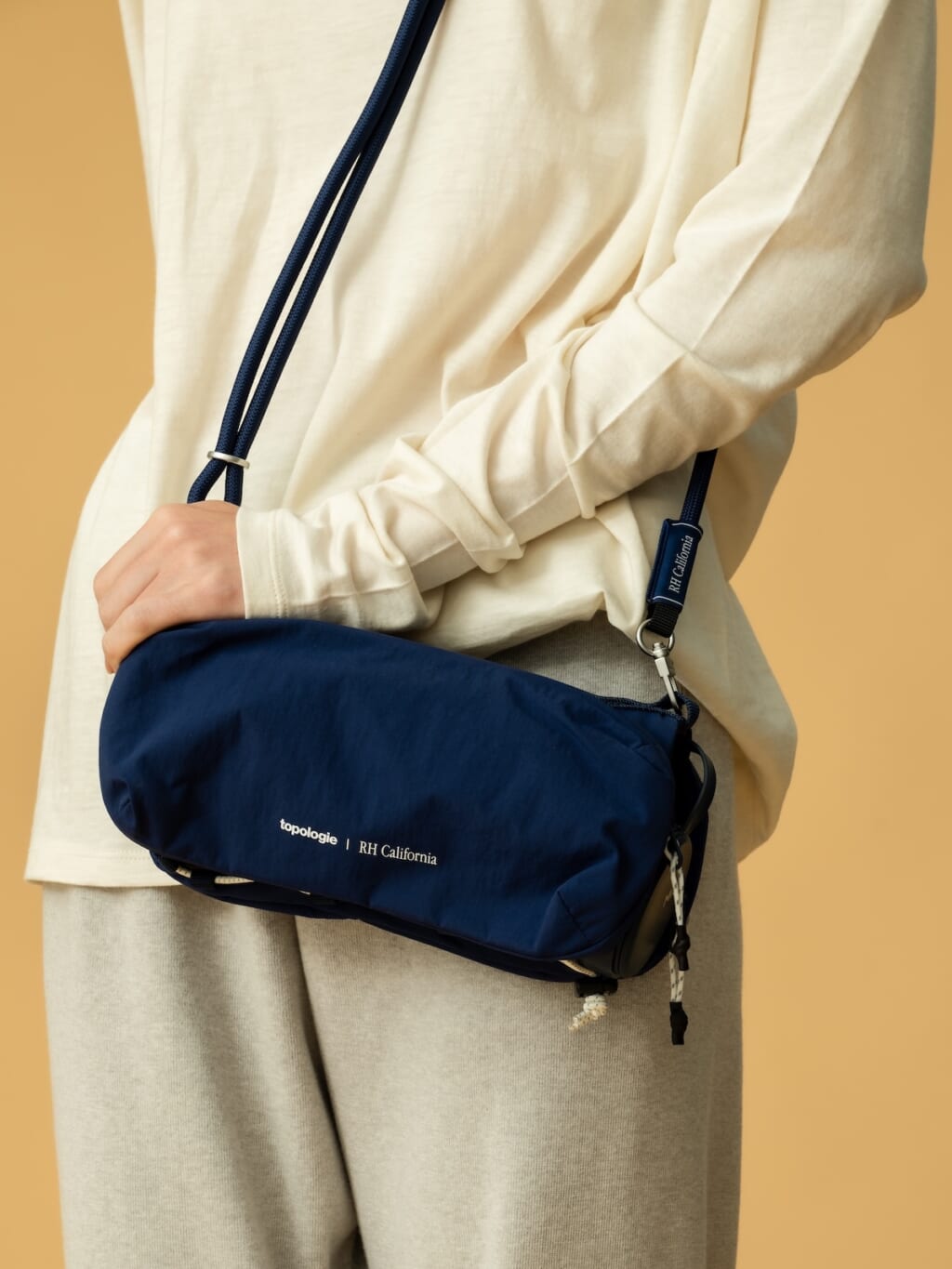 「トポロジー」のベストセラーであるサコッシュをピックアップし、「ロンハーマン」のブランドカラーである濃紺へシフト。ちょっとした外出から旅先まで使えそうなサイズ感も◎。