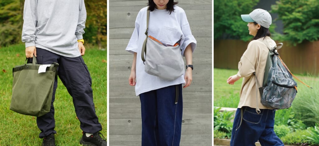 (左)MESH 2WAY TOTE ¥7700(中央)MESH SHOULDER BAG ¥5280(右)MESH RUCK ¥8580