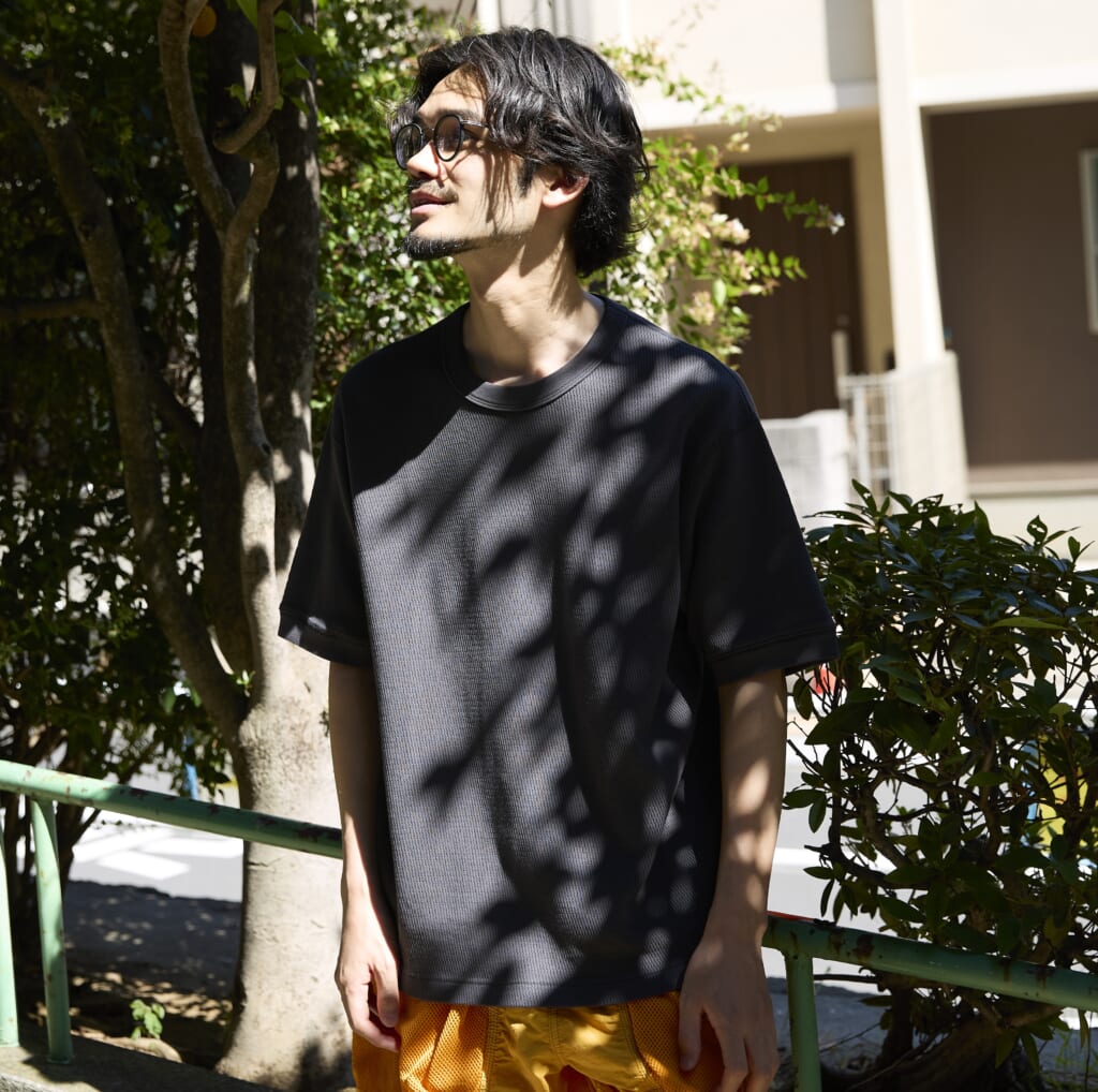 ピグメント染めを施した深みのある色合いに加え、凹凸の質感もヴィンテージミリタリーのサーマル地を忠実に再現。一枚で着られるように程良くゆとりのある身幅にデザイン。