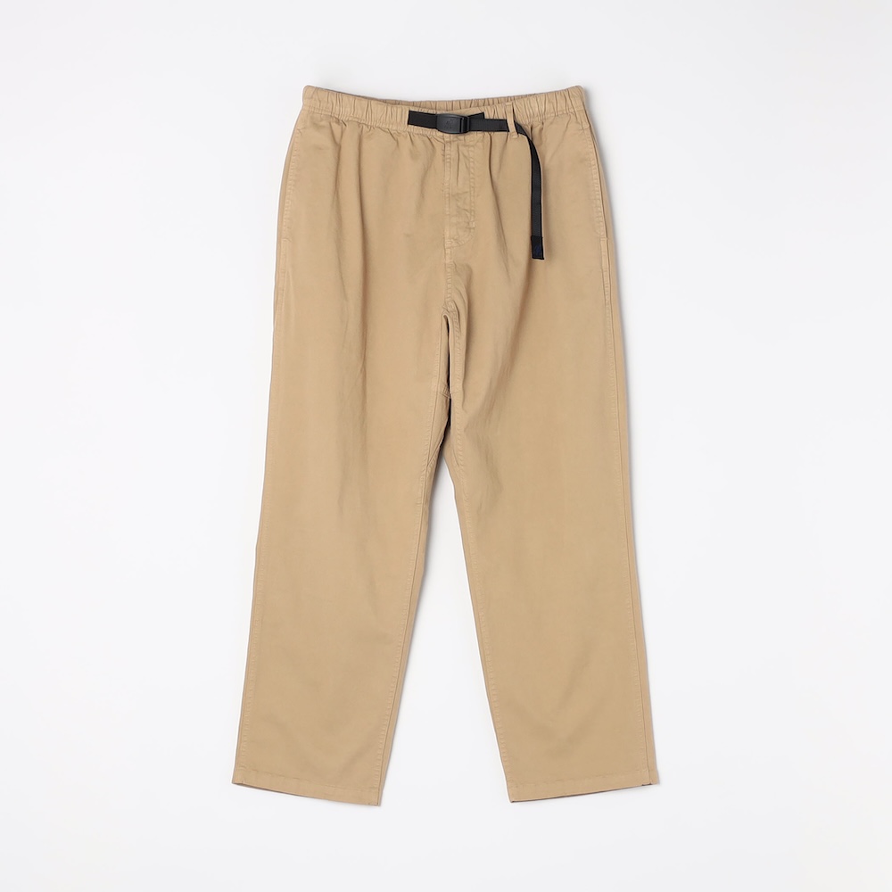 「グラミチ」の定番素材であるストレッチチノ素材を使用し、動きやすさと快適さを両立した今作。ゆったりとしたルーズテーパーシルエットを採用しているので、リラクシングな穿き心地を味わうことができます。