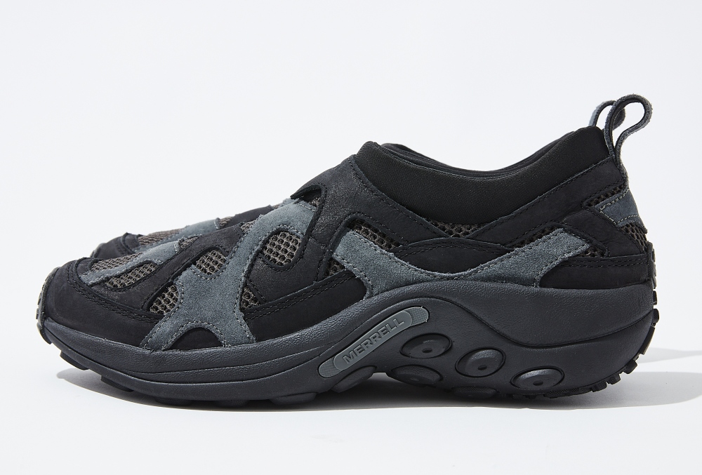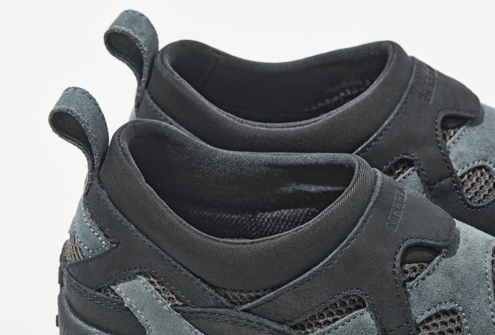 モノトーンのグラデーションがソリッドな印象を生み出すブラックカラーのモデルは、アーバンアウトドアな着こなしのアクセントに最適。個性的なルックスも要注目ながら、メレルのモックシューズならではの履きやすさやフィット感など、アウトドアシーンに対応する機能性も見逃せない。
