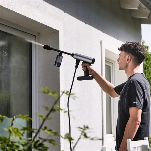 片手で扱える1.5kgの軽量設計ながら、最大噴射圧力2.0Mpaで抜群の洗浄力を発揮。窓・クルマ・自転車などに対応するほか、泡噴射機能も盛り込んだ5つのモードを搭載。