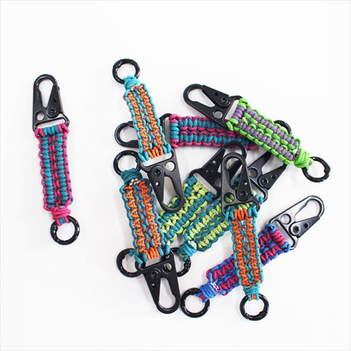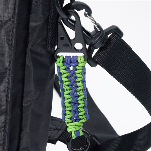 パラグライダーのラインを編み込み、上下にカラビナとOリングを配置。コーディネートのアクセントにもなる色鮮やかなキーリングは、素材の持つ優れた耐荷重もポイントです。