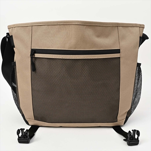 メインコンパートメントはラップトップ&タブレット用の収納スペースを備えた2気室構造。フロントだけでなく両サイドにもメッシュ仕立てのポケットをレイアウト。