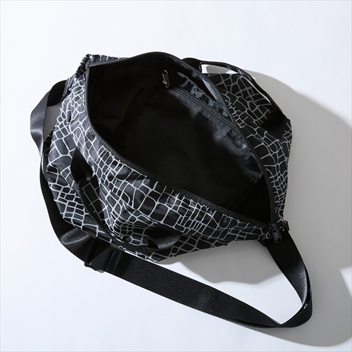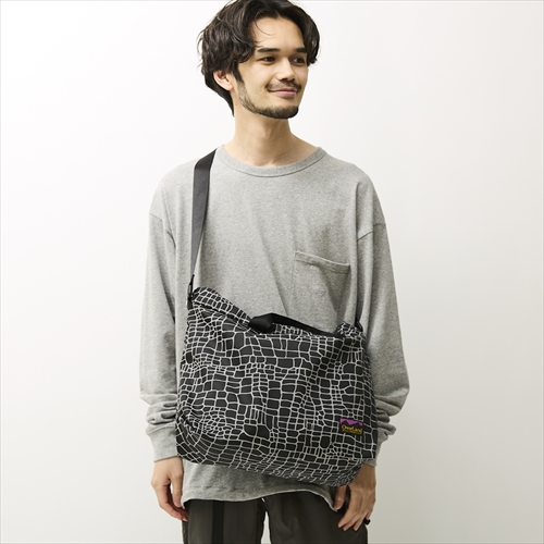 光を受けると暗闇で反射するリフレクタープリントを、インパクトのあるスパイダー柄で散りばめたショルダーバッグ。大きくバッグ口が開くため、荷物の取り出しがスムーズ。