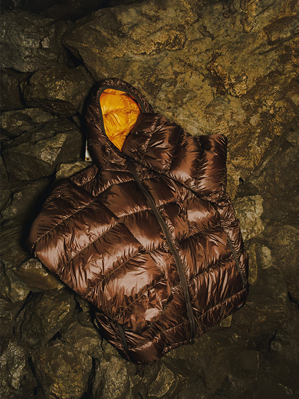 軽さ、柔らかさ、暖かさというダウンジャケットの本質を捉えたこちらのモデル。表地は10デニールという超軽量ナイロン素材が採用され、しっとりとしたソフトな肌触りが特徴。裏地にも15デニールの軽量ナイロンが用いられ、表地よりもマットな光沢感が◎。