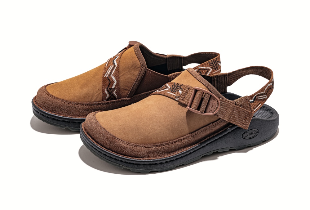 スエードのマッドガードを備えたフルグレインレザーのアッパーに、高反発PUミッドソールやグリップ性に優れる独自アウトソール、快適なフットベッドなどを組み合わせたオールシーズン対応サンダル。