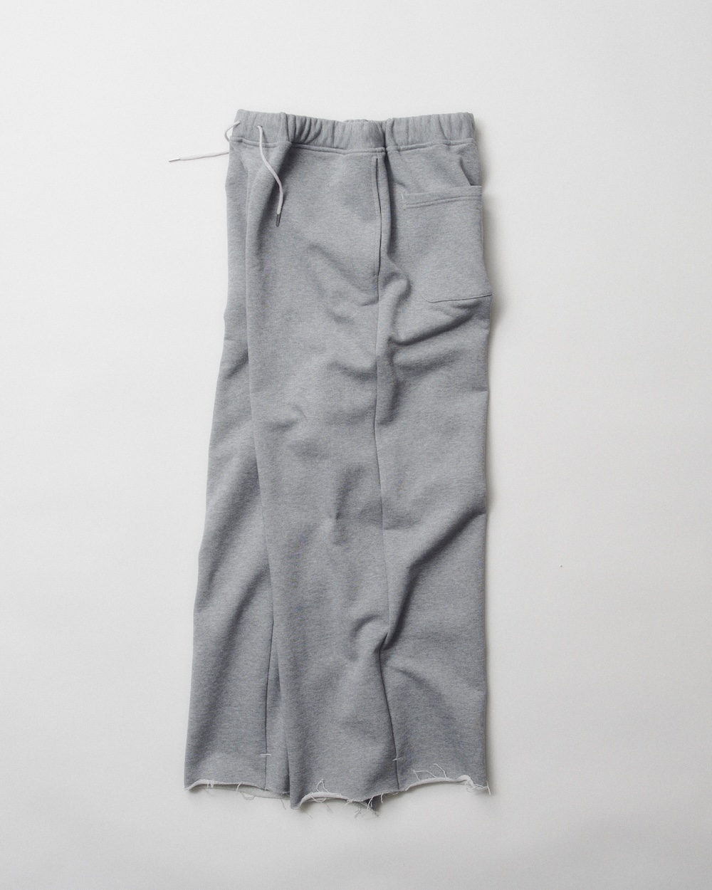 最後は裾にボリュームを持たせたワイドスウェットパンツをピックアップ。足元に溜まるくらいの丈の長さで、サイドとヒップにポケット付き。裾から少し上に配色でカンヌキが入れあるので、好みでレングスをカットして、長さを調整できます。