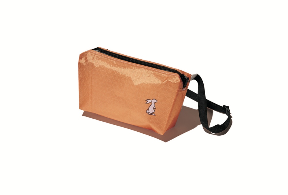 新素材のTX95にプリントを施したミニポーチ。「これにハンモックとお酒とクッカーを入れて山で一泊することも。詳しくは、YouTubeの“ファニーパッキング対決”をチェックしてみてください!」。