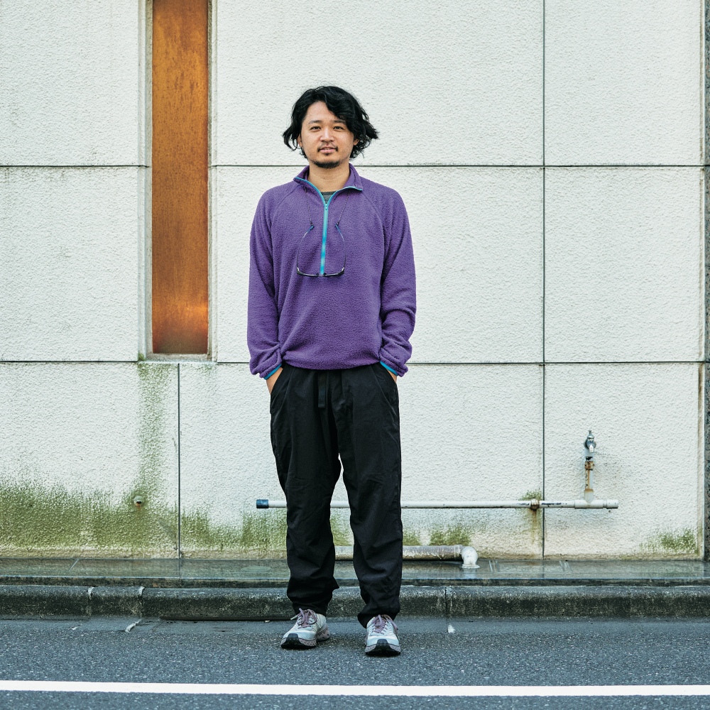 登山からトレイルランニングにハマり、現在は100マイルレースの完走を狙う100マイラー予備軍。休日は、高尾山でトレーニングをしつつ、北アルプスを縦走することも。「今秋は、南アルプスをファストハイクします」。リラックスした着心地で、そのまま街でも遊べる、秋のアフターランコーデ。アクティブプルオーバー¥19000、5ポケットワイドパンツ¥18000/ともに山と道 シューズ:トミール1.0 ¥27500/ノーマル サングラス:タケハヤ¥23100/アウルミルズ ウールメッシュタンク/ヒアネス