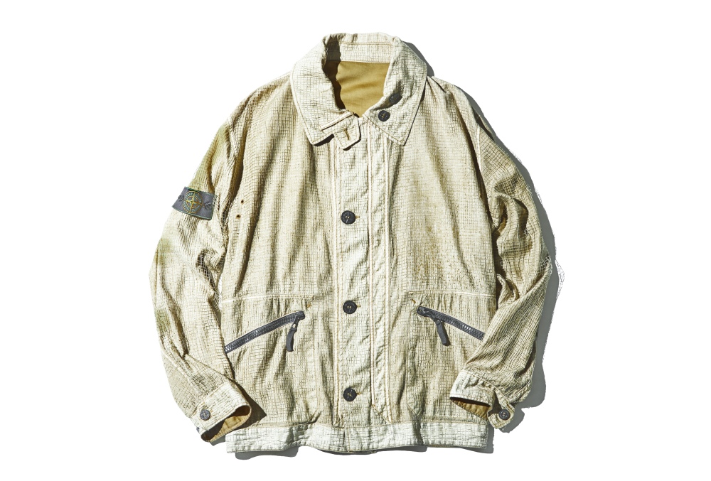 蜘蛛の巣をイメージした網上のメッシュを取り入れたレアな1着。リバーシブル仕様で、こちらは裏側となる。「ストーンアイランドはヴィンテージが狙い目。これは1997年の春夏モデルです」。