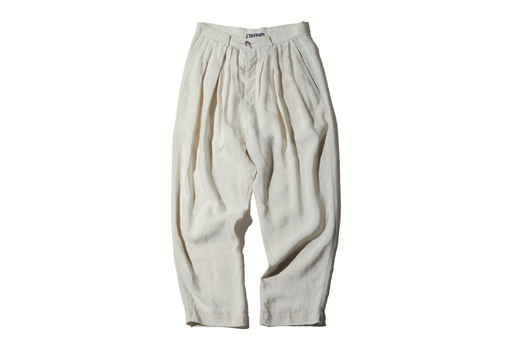 80年代のフランスの古着で、4タックが生み出す上品なシルエットが魅力。「シルクとリネンの混紡生地で、白過ぎない絶妙な色味もポイントです。目立つ汚れやシミ、ホツレなどもありません」。