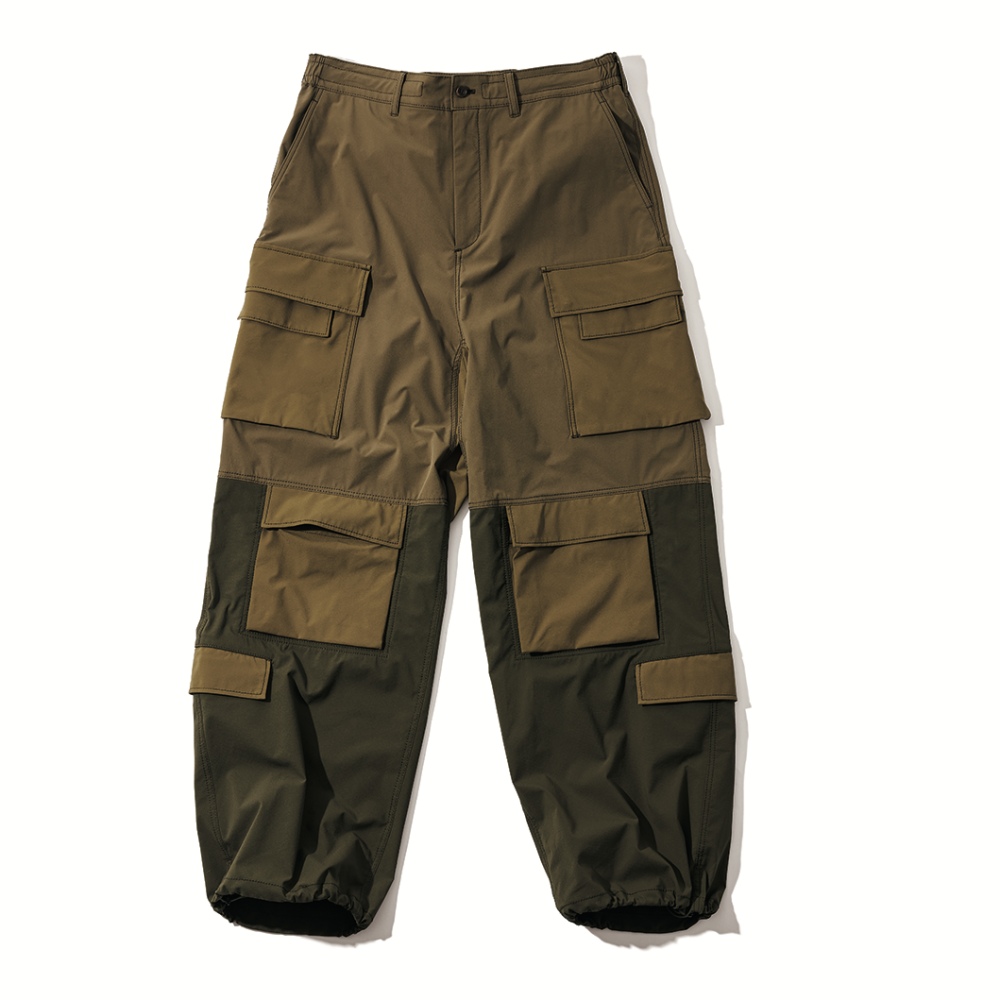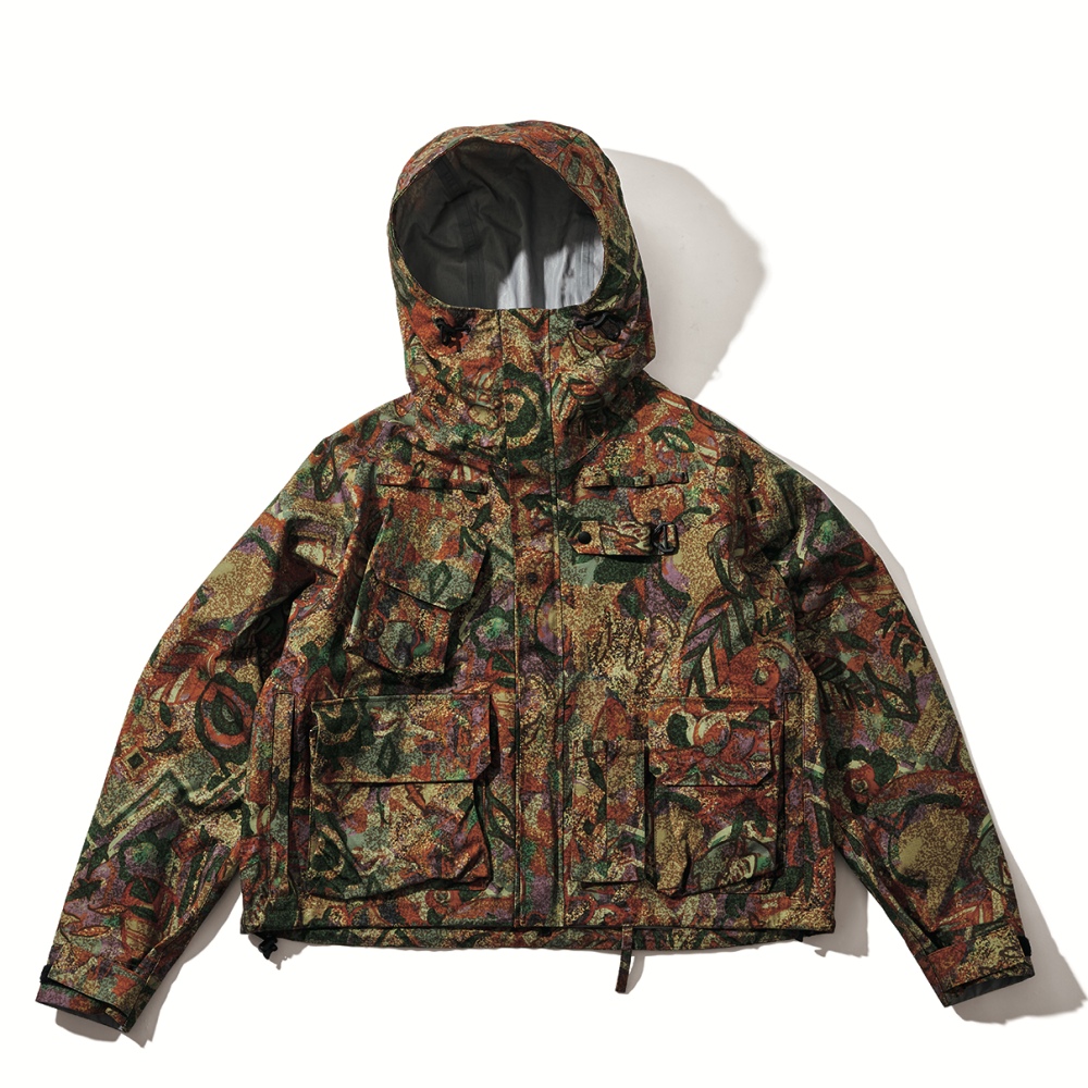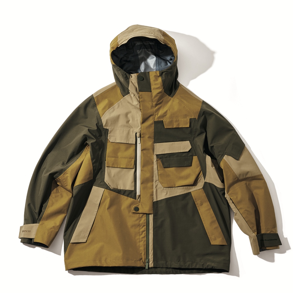ポケットを左右非対称にいくつも重ねたデザインに、全3色のゴアテックスファブリックを落とし込んだクレイジーパターンは迫力満点。