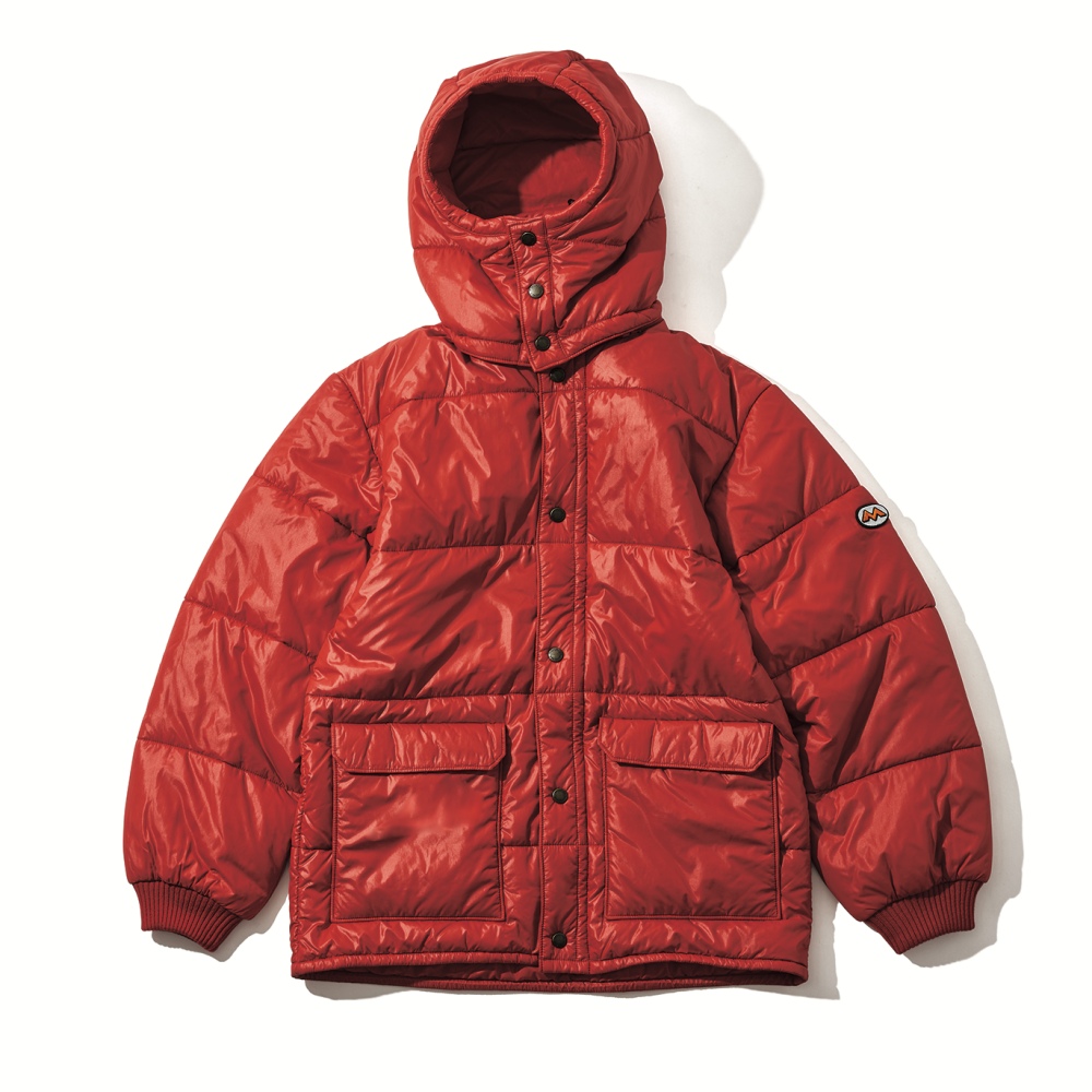 創業10周年目に限定販売されたスタジャンを復刻。デザインはそのままに、より軽量で耐久性の高い素材を使用した。こちらもエクセロフトを封入。