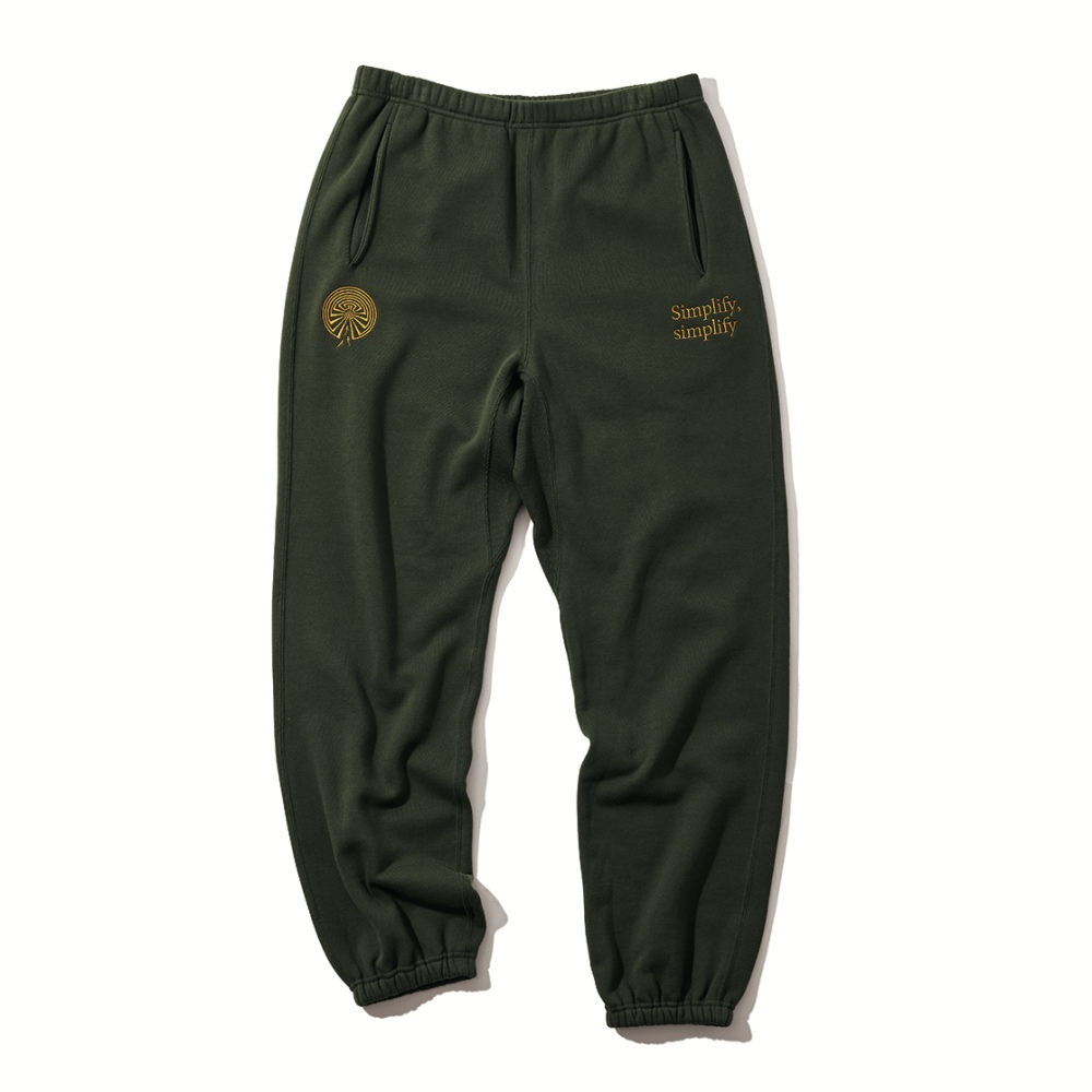 肌触りのよいフレンチテリー素材を使用。ブランドカラーのボトルグリーンに、メイズと“Simplify simplify”の黄色い刺しゅうが映える。