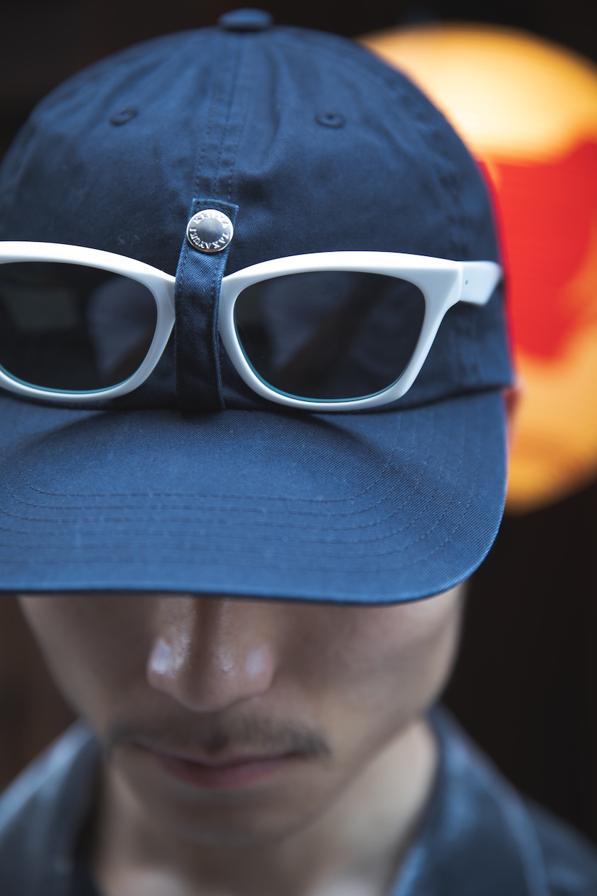 サングラスホルダーという大胆なディテールを落とし込んだほか、実用性だけでなく装着感にも優れるデザインに。トライ&エラーを繰り返して完成されたキャップは、外出時にサングラスの置き場所に困るという日常時の悩みも解決した画期的アイテムです。