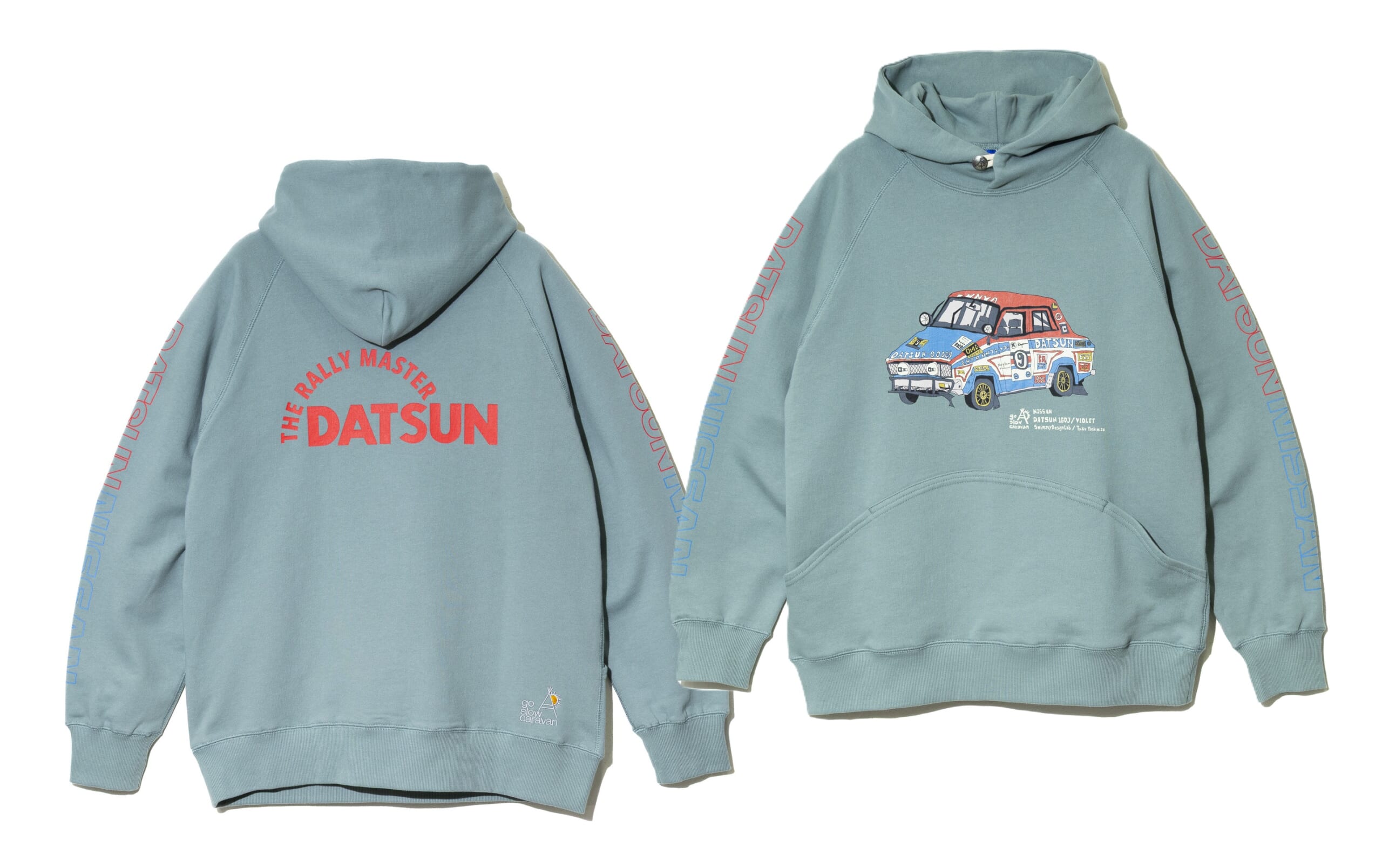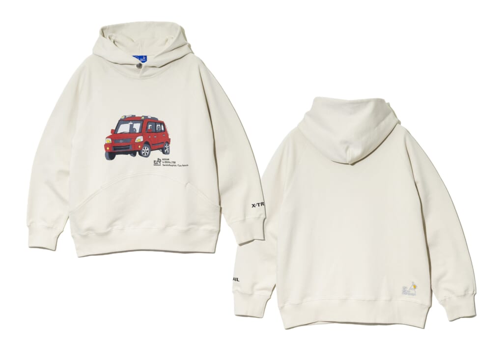 前身頃にはアートディレクター、Taku Yoshimizu 氏が描いたイラストがデザインされている。アウトドアシーンで大人気のSUV、エクストレイル(T30)及び’79年サファリラリーで総合優勝を果たしたバイオレット(ダットサン160J)の2パターンをラインナップ。