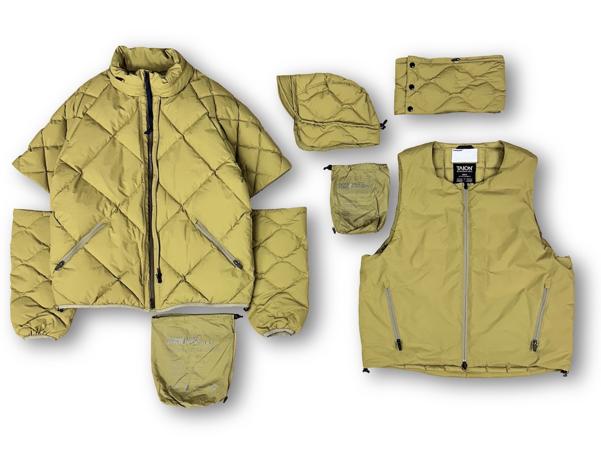 ポリクアント meets タイオン。両者による初コラボは 4つのアイテムを一度に楽しめる、ユニークなダウンジャケット。