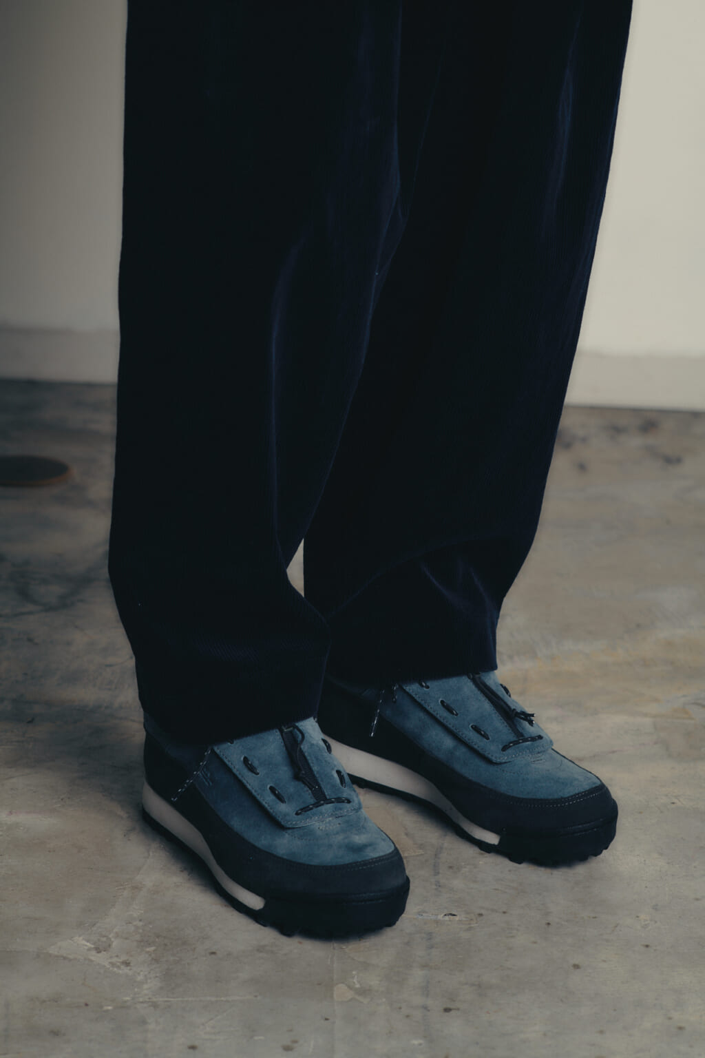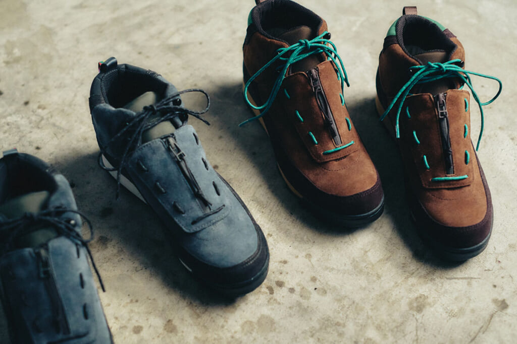 本作は「SUICOKE」の新モデル“Flow Mid Shoes”をベースに、アッパーやカラーリングに「is-ness」らしいエッセンスを落とし込んだというスペシャルエディション。