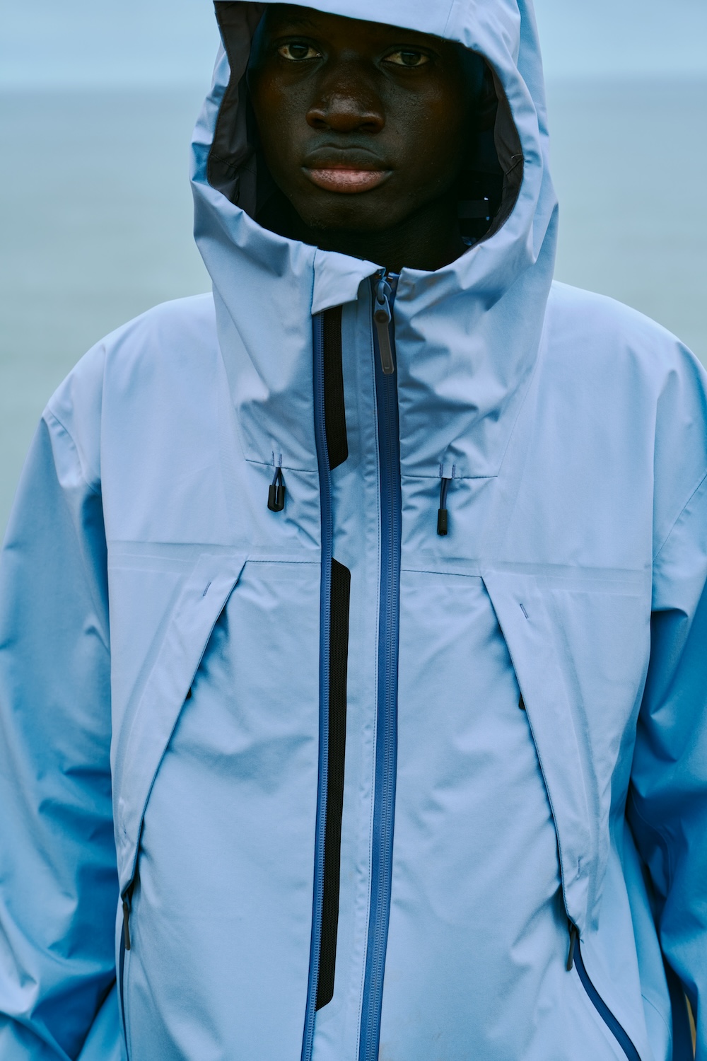 防水透湿性、防風性を備えたDermizax®︎を使用した3レイヤーシェルジャケット。フロントファスナー部分にはブランド独自のベンチレーションシステムを装備し、2列のジッパーとその間に配置したダブルラッセル生地により、外気を取り込み、衣服内にこもりやすい不快な熱や湿気を逃がすことができます。