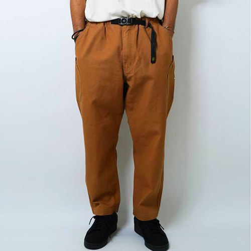 吸湿性に優れるヘンプブレンドの生地に硫化染めと難燃加工をプラス。風合いを引き出した手の込んだ一本は、荷物を入れても膨らみを抑える独自の3層ポケットがサイドに。