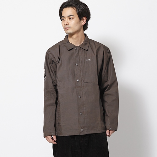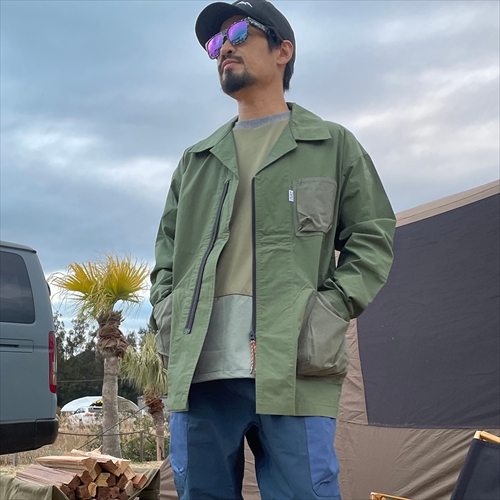 コットンの柔らかな風合いを出しつつ、特殊な加工によって難燃性を追求。ボタンとジップを備えた前立てで防風性も高め、ベーシックなコーチジャケットがフィールド仕様に。