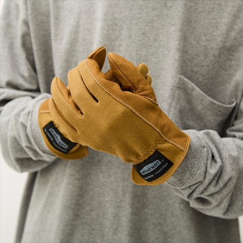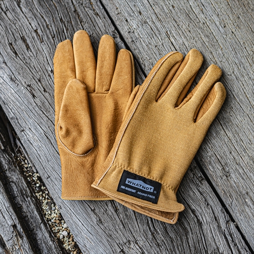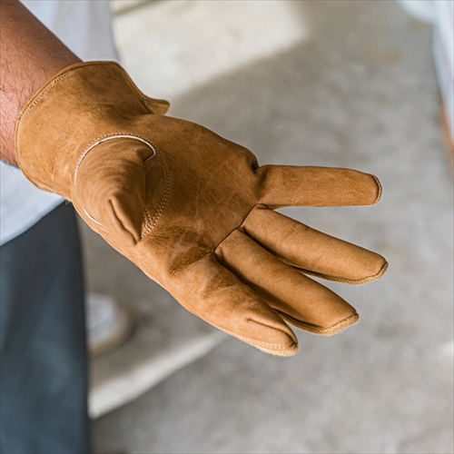 防弾チョッキなどにも使われ、火の粉を受けても溶けにくいアラミド繊維を甲側に配置。手のひら側には牛革がレイアウトされ、キャンプやD.I.Y.といったタフなシーンで活躍。