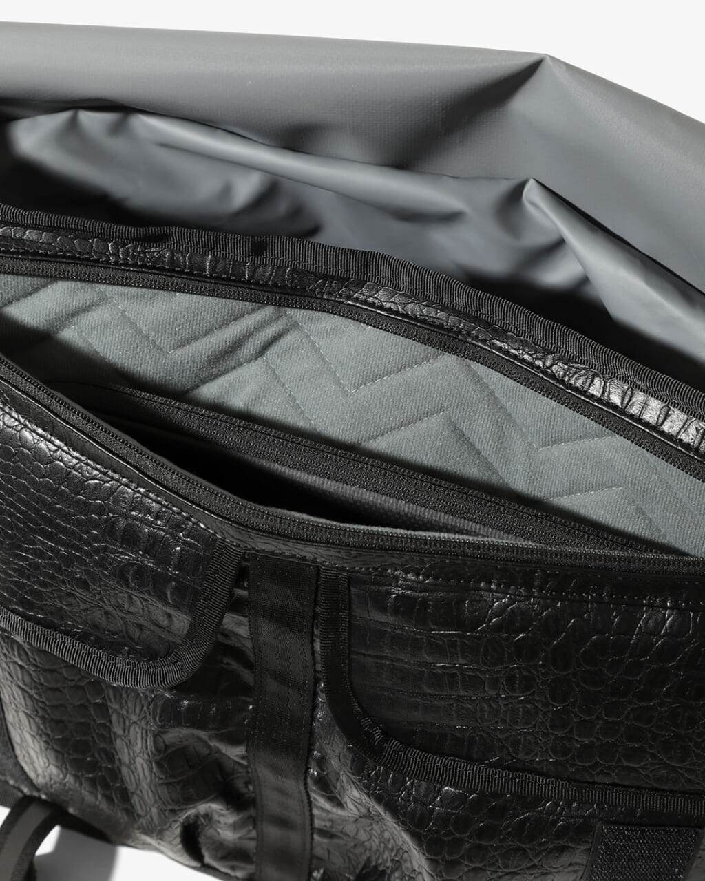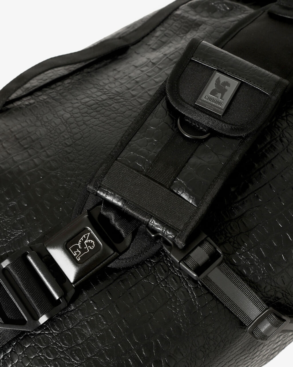 本作は、1995年にサンフランシスコで誕生した「CHROME」の名作として名高いメッセンジャーバッグ“CITIZEN 24L”をベースに、上質なクロコダイル柄の型押しレザーを本体に採用し、 通常は別売りである“PHONE POUCH”を標準装着した特別仕様。