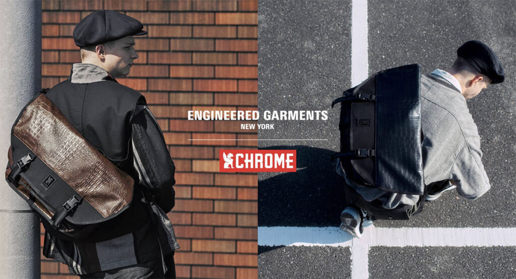 「ENGINEERED GARMENTS(エンジニアド ガーメンツ)」から、今年でブランド生誕30周年を迎える米国発のバッグブランド「CHROME (クローム)」とのコラボレーションによるプロダクトの第 2弾がリリースされた。