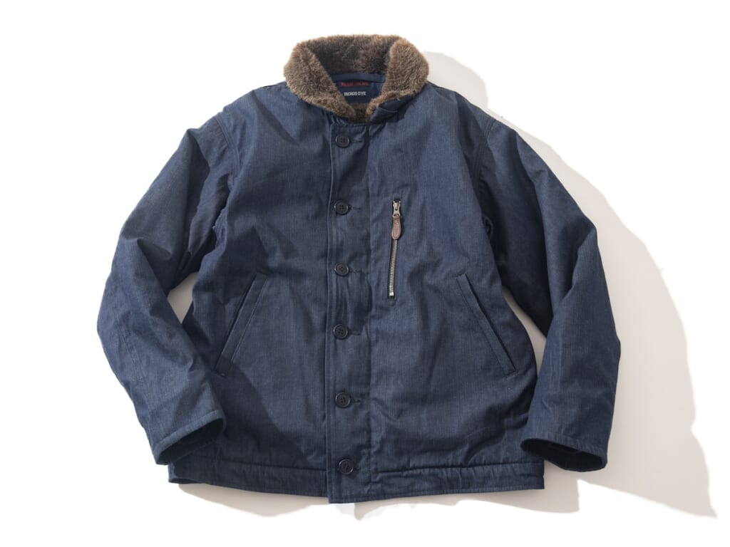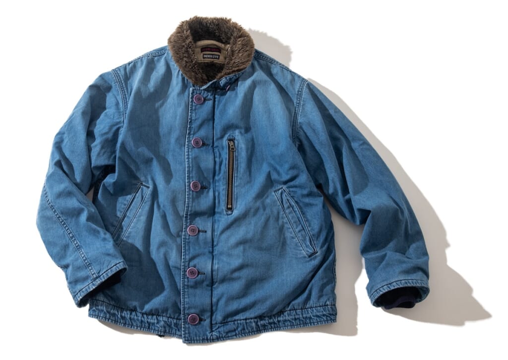 1940〜‘50年代に U.S.ネイビーが採用していたジャケットをベースにデザインし、オリジナルの7 oz.ジャカードデニムでブラッシュアップ。ボディはもちろん、袖裏にまで毛足の長いファーを配し、防寒性十分に仕上げた。軽く動きやすい着心地ながら耐久性に優れ、長く愛用できるのも魅力だ。