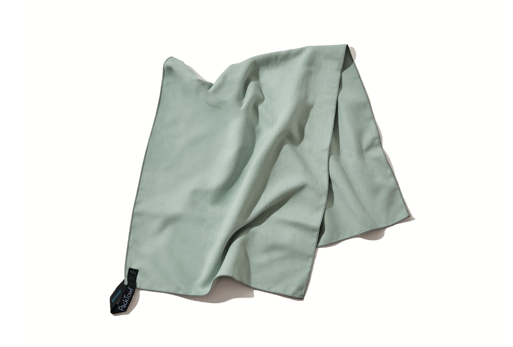 速乾タオルの定番ブランドによるロングセラーモデル。さまざまなサイズが揃うなか、こちらは首やバッグから下げやすい、42cm×92cmのハンドタオル。優しい肌触りながら、自重の4倍の吸水力を誇る実力派。¥4620