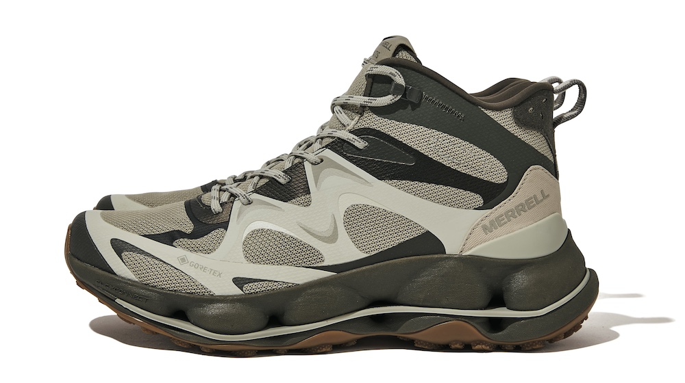 マシュマロのような楕円形が連なるミッドソールが印象的な次世代ハイクシューズ。独自の弾力性と高いグリップ力、ゴアテックスによる透湿防水性を備え、ロングハイクを快適にサポートする。¥35200