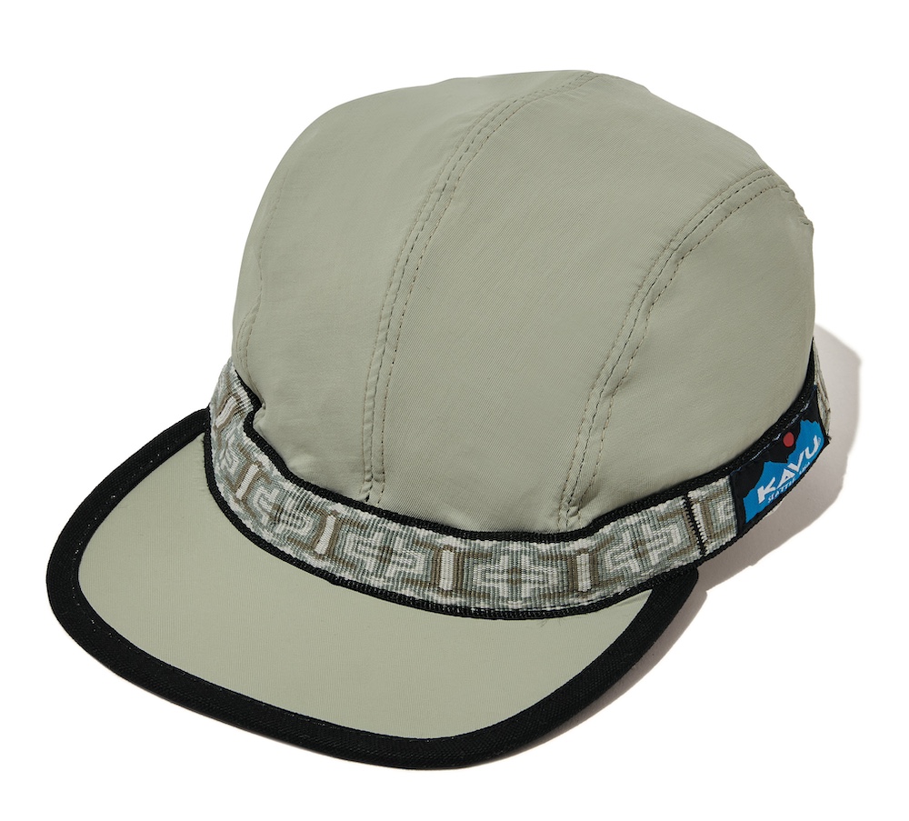 こちらはベーシックなシルバーカラーだが、ハイクコーデのアクセントになる総柄モデルも揃う、カブーの定番キャップ。ウェービングベルトの柄はアソート仕様なので、ネットよりショップで直接選びたい。¥7150