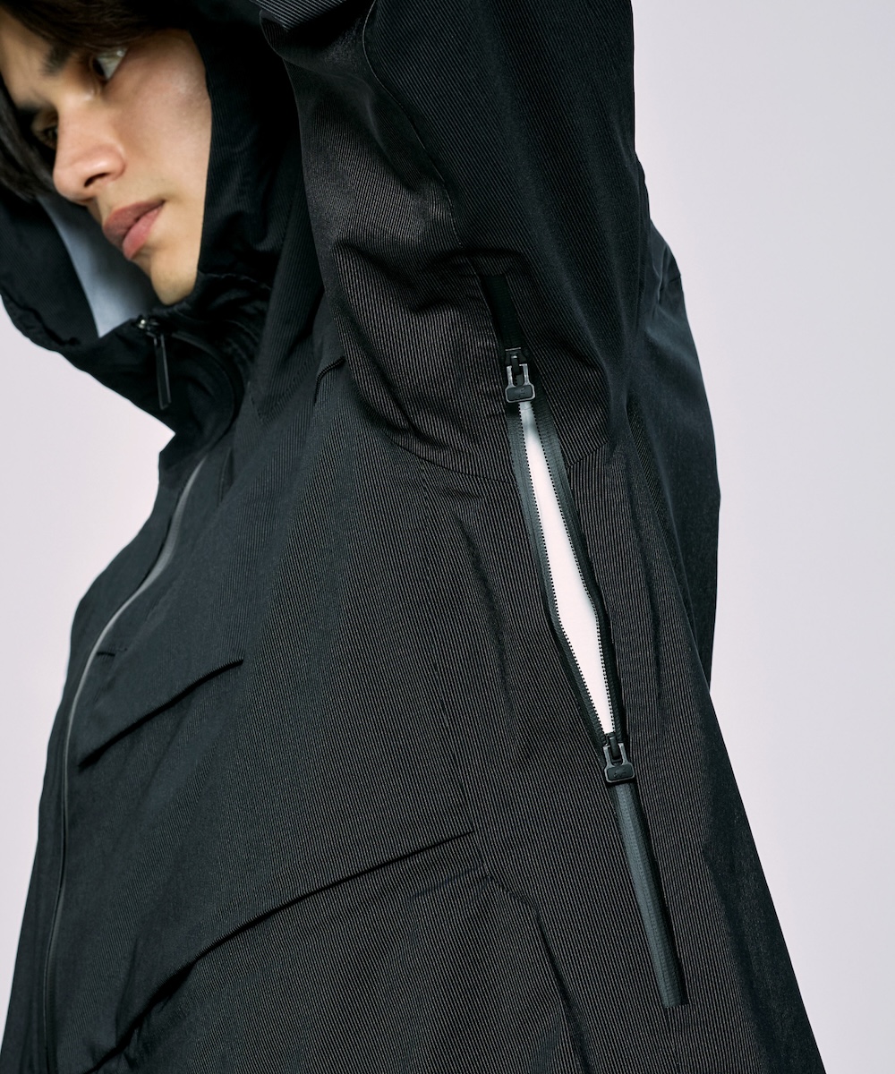 左右の袖下から脇にかけてピットジップのベンチレーションを搭載。⾐服内のイヤな蒸れを排出し、体温調節を効果的に⾏うことが可能です。