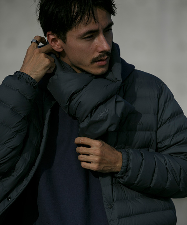 URBAN RESEARCH DOORSでも既に人気の高いNANGAのインナーダウンジャケット。今回はより価値の高まる一着へと大幅にリニューアルをおこないました。シーンや気分に合わせて2つの表情を楽しめるリバーシブル仕様にアップデート。裾はストレートラインへ変更し、スピンドルの調節でシルエットを自在にアレンジできます。首まわりもコンパクトに設計され、パーカーやタートルネックなど秋冬の定番トップス合わせのアレンジはもちろん、リバーシブル仕様でスタイリングの幅が更に広がる一着に。