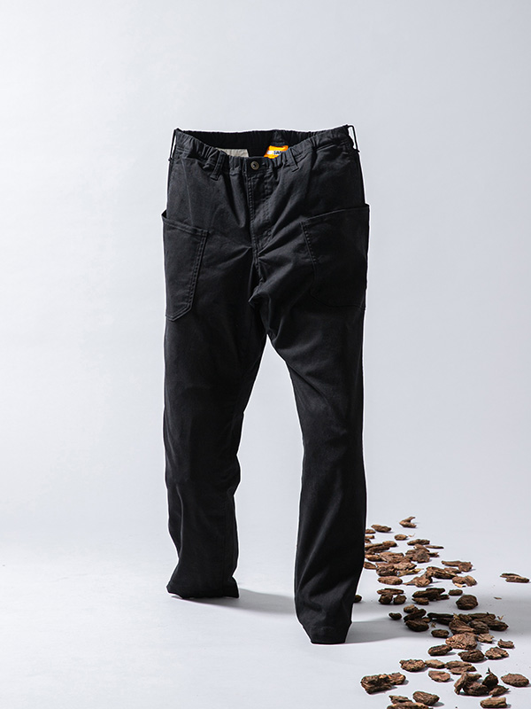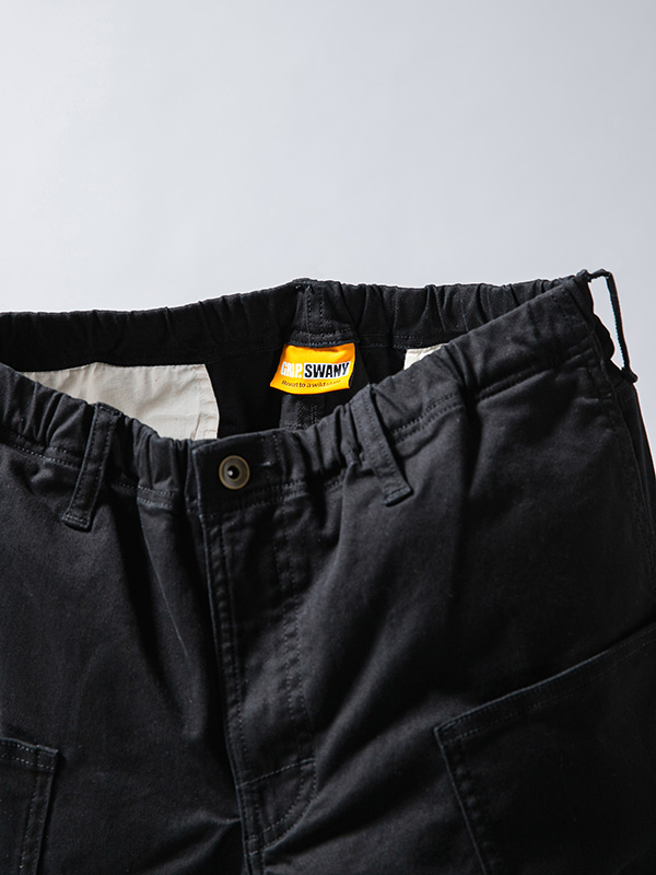 「グリップスワニー」の定番である“CAMP PANTS”をもとに、ウエスト周りの仕様をイージータイプにアレンジした今作。通常のパンツよりも大きなポケットを複数配置しているので、キャンプ道具の収納もバッチリ。