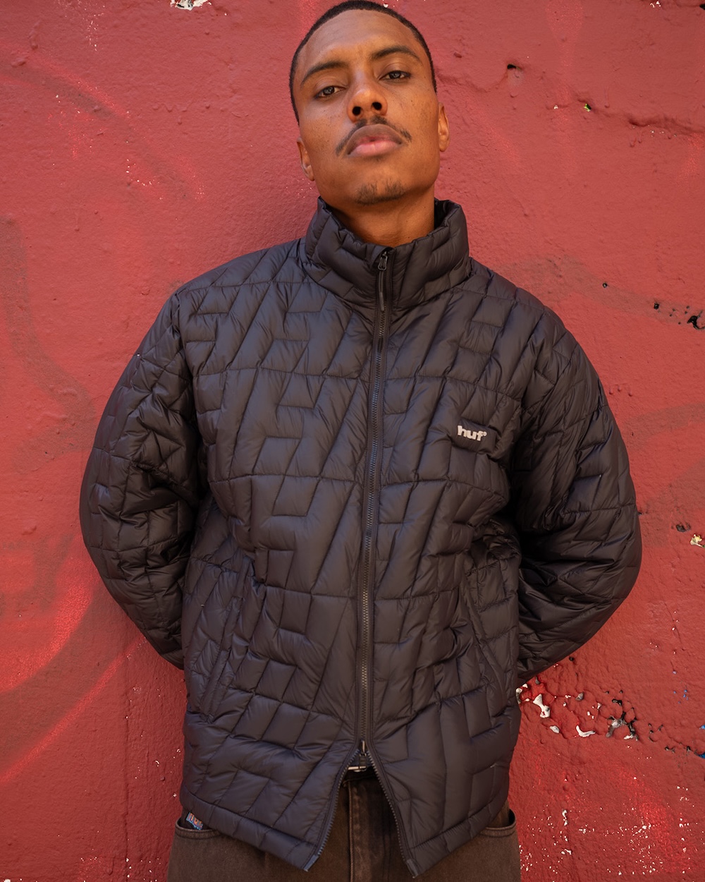 こちらは、2000年代初頭のクラシックなエクスプロレーション・レイヤリングジャケットをデザインコンセプトに、ストリートなデザインと機能性を重ねたダウンジャケット。特筆すべきは表地のキルト構造で、「ハフ」の頭文字“H”を全面にあしらったアイコニックな仕上がりに。
