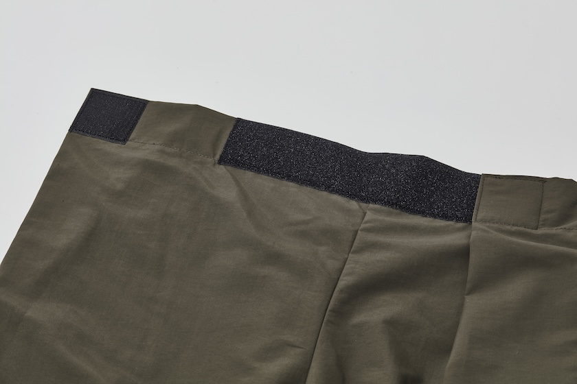 前述のようにベルクロでフィッティングが自在に調整でき、さらには着丈をやや短めの約100cmに。ウエストが60〜100cmまで対応できるため、大柄な男性だけでなく小柄な女性も着こなせる一本に。ユニセックスモデルとしてパートナーとシェアできるのも魅力です。