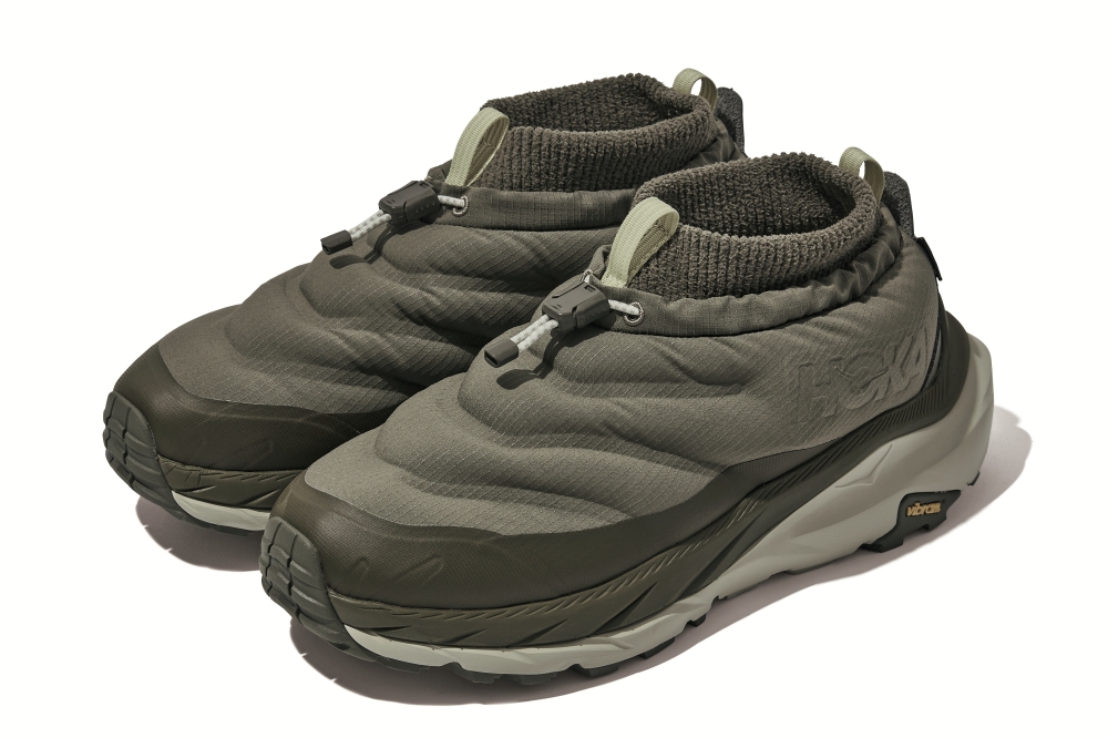 キルティングパネルに中綿を詰め込み、ゴアテックス採用のモックシューズは、まさに寝袋のような履き心地。ストレッチフリースのトップカラー、快適なミッドソール、トレイル対応のソールも特徴