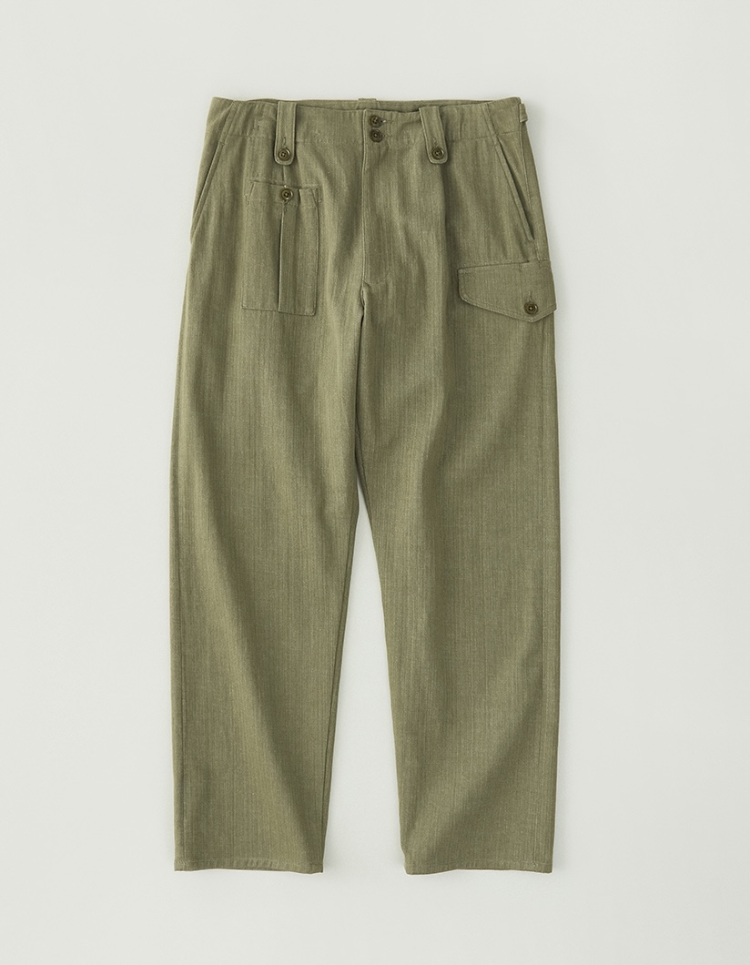 イギリス軍の定番的なコンバットトラウザーをベースにデザインした本作。ワイドなストレートシルエットを採用しつつ、腰まわりはコンパクトにしているので、ランブリングに最適。ベルトループやポケット形状などは、当時のモデルをそのまま踏襲しています。