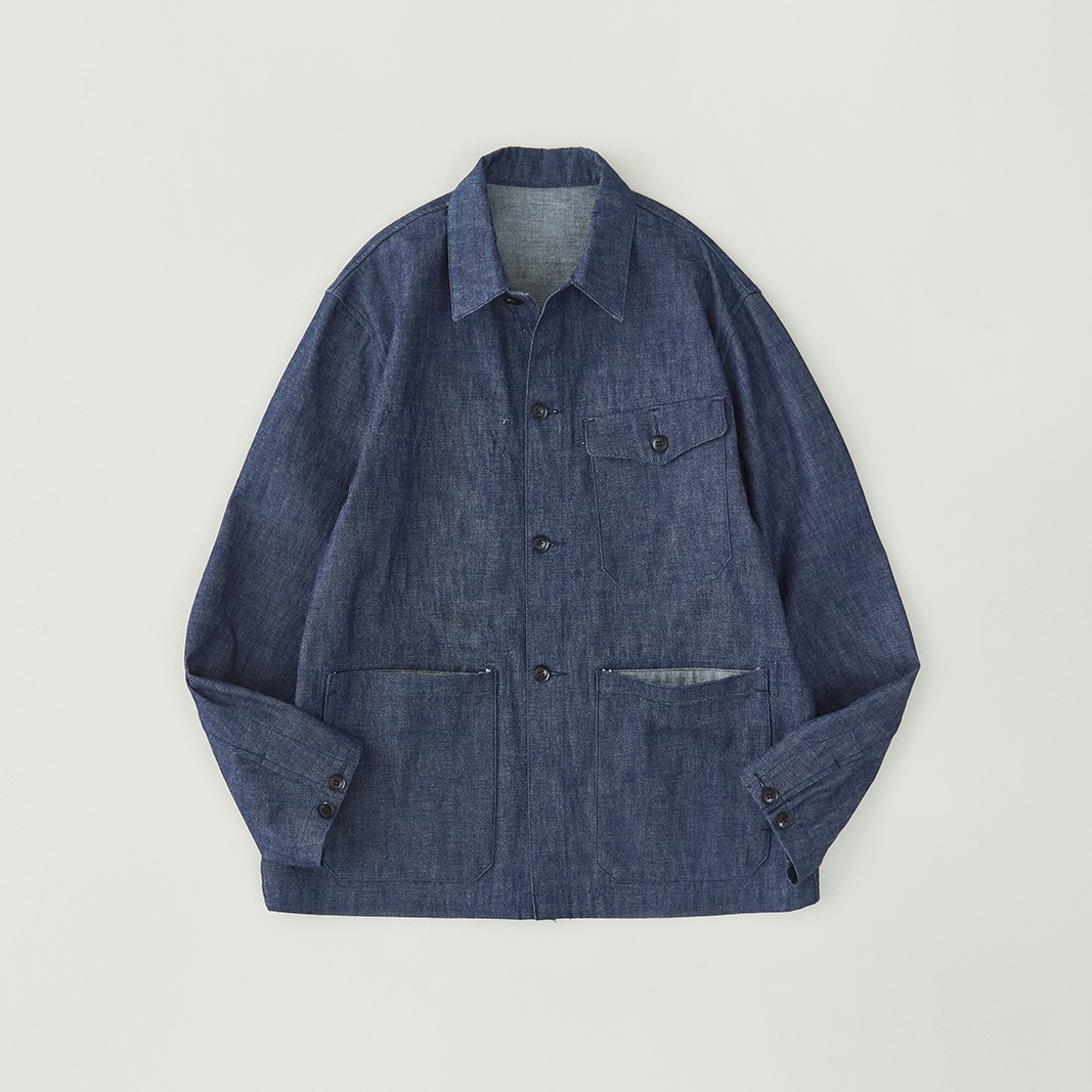 こちらも1950年代のイギリス軍のカバーオールをベースに製作した10.5ozデニムのカバーオール。熟練の職人たちが糸本来の風合いやムラ感、凹凸のある織り方を丁寧に施すことで、デニムならではのエイジングを楽しむことができます。ポケット周りは補強を施し、耐久性も高められています。