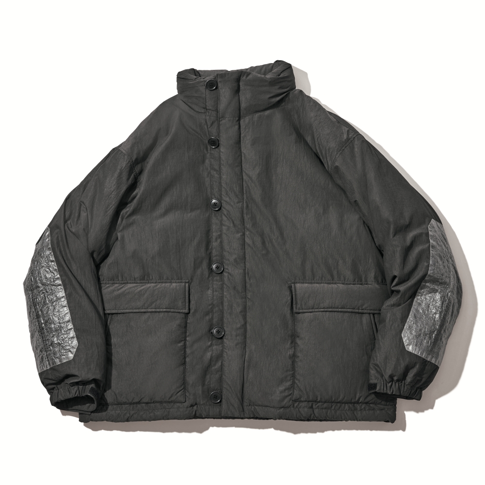 600FPで良質とされるアメリカ製のダウンを、1000FPで封入したハイスペックなダウンブルゾン。軽量ナイロンにシワ加工を施し、肘は高耐久のダイニーマで切り替えた。大容量ポケットが手ぶら派にうれしい。¥57200