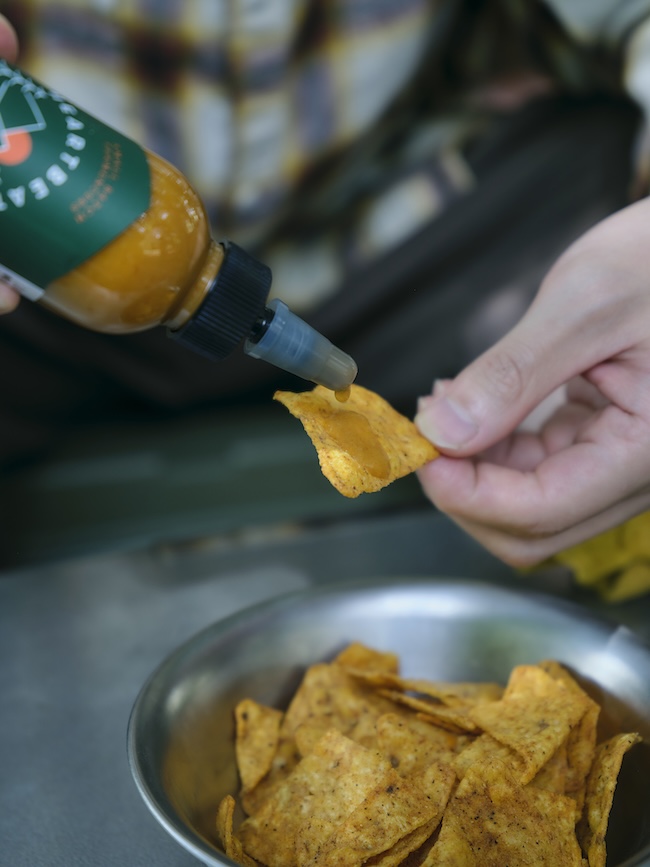 試食と販売を通じ、世界中のクラフトホットソースを身近にした「Hot Sauce Bar(ホットソースバー)」。食を豊かにする同店とのコラボは、現在のところ非売品となるロングスリーブTと、料理好きのキャンパーに向けて提案したホットソースをセットにしてお届け!!